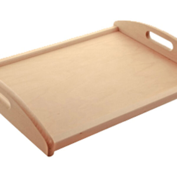 Taca serwisowa z uchwytami wykonana z naturalnego drewna.