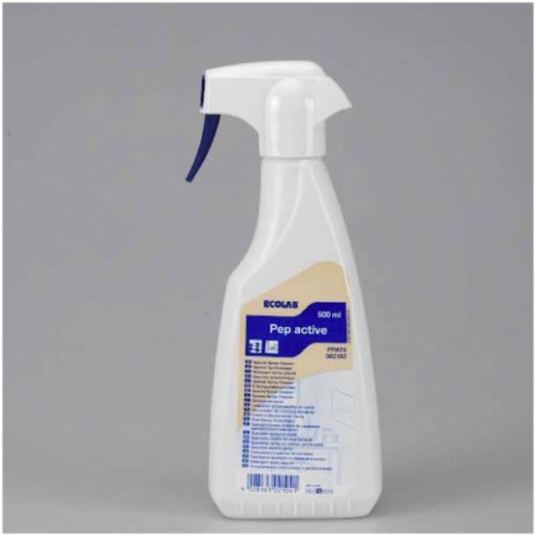 Pep Active to środek w wygodnej butelce ze spryskiwaczem przeznaczony do usuwania zabrudzeń z długopisu, pióra wiecznego, graffiti, oraz tłustego zabrudzenia. Doskonale nadaje się do miejscowego usuwania plam z biurek, komputerów, drukarek, itp. a ponadto usuwa czarne ślady z posadzek niezabezpieczonych. Czyści szybko i skutecznie nie uszkadzając powierzchni.