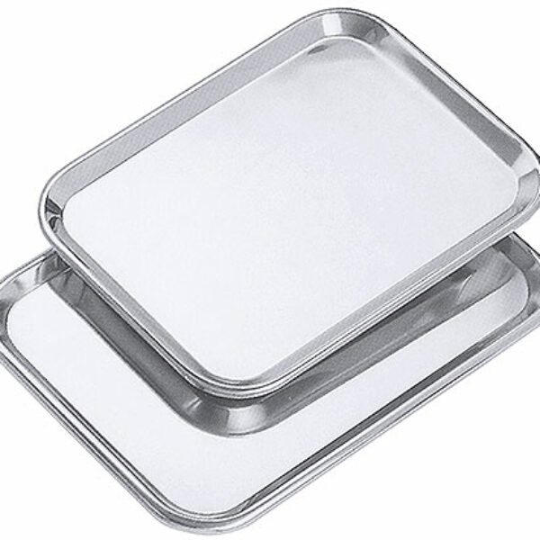 Taca ze stali nierdzewnej. Wysoki połysk, z obrębem z otwartym brzegiem.