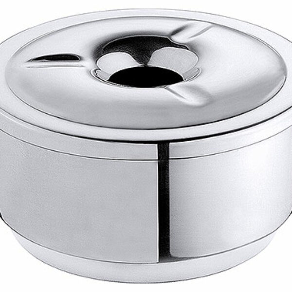 Popielniczka składająca się z dwóch części wykonana z polerowanej na zewnątrz stali nierdzewnej 18/10. Głęboka by umieścić w środku wodę lub piasek.