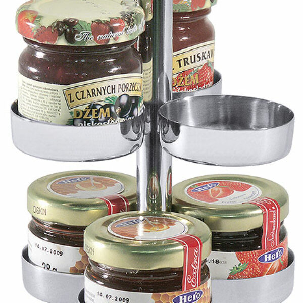 Etażera na dżem wykonana z polerowanej stali nierdzewnej 18/10 na 6 małych miseczek na dżem o średnicy 40 mm. Wysoka jakość.
