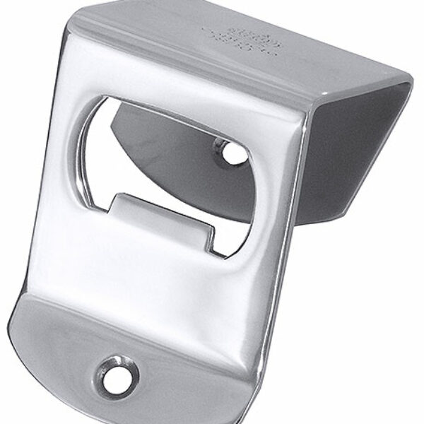 Otwieracz do butelek ze wzmacnianej, polerowanej stali nierdzewnej. Do zamontowania do ściany.