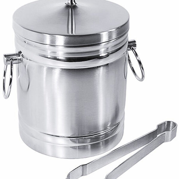 Termoizolacyjny pojemnik na kostki lodu. Wykonany z satynowanej stali nierdzewnej z pokrywką. Posiada wewnątrz tackę ociekową. W zestawie ze szczypcami.