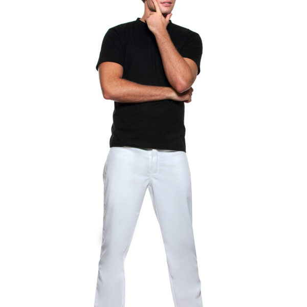 Spodnie męskie 65% PES, 35% bawełny. Spodnie wykonane z wysokiej jakości tkaniny z możliwością regulacji. Z pięcioma kieszeniami, szlufkami na pasek, zapinane na zamek błyskawiczny. Można prać w pralce automatycznej w maksymalnej temperaturze 95 stopni Celsjusza, suszyć w suszarce automatycznej w programie „delikatnym” oraz prasować w temperaturze do 150 stopni Celsjusza. Można poddać profesjonalnemu czyszczeniu chemicznemu.
