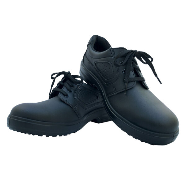 Uniwersalne obuwie z antybakteryjną wkładką. Antystatyczne, olejoodporne, posiada amortyzowaną piętę. Wykonane z „oddychającego” materiału, można prać w pralce automatycznej w temperaturze do 40 stopni Celsjusza. Antypoślizgowe. Wzmacniany materiał na palcach pozwala wytrzymać ucisk 200 dżuli. Kolor czarny, wiązanie na sznurówki.