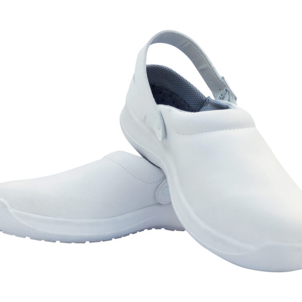 Uniwersalne obuwie z antybakteryjną wkładką. Antystatyczne, olejoodporne, posiada amortyzowaną piętę. Wykonane z „oddychającego” materiału, można prać w pralce automatycznej w temperaturze do 40 stopni Celsjusza. Antypoślizgowe. Kolor biały.