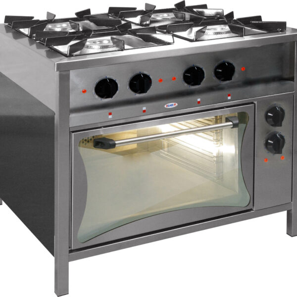 Trzon gastronomiczny gazowy 4-palnikowy z piekarnikiem elektrycznym, 900x700x850 mm, 27,6 kW | EGAZ, TG-4725/PKE-2