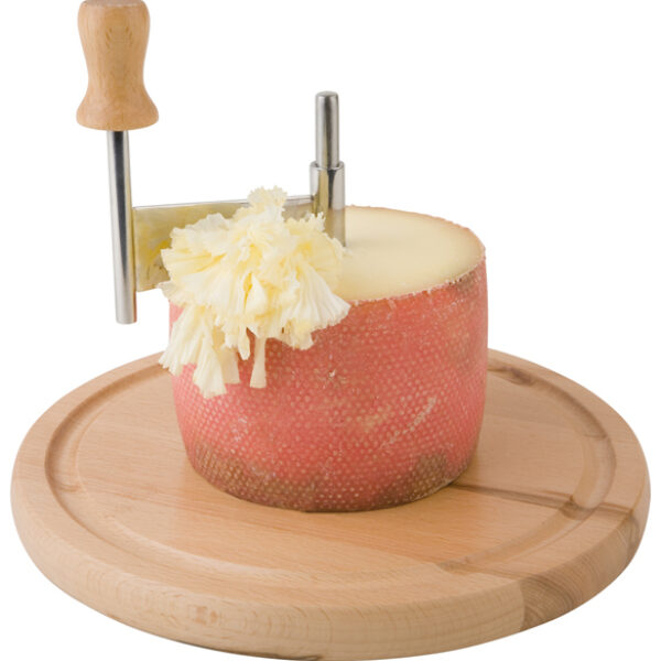 Zestaw składa się z wytrzymałej drewnianej podstawy o średnicy 220 mm z pionowym bolcem na środku deski, hebla wykonanego ze stali nierdzewnej oraz plastikowej pokrywy o średnicy 150 mm. Komplet służy do ekspozycji i krojenia w delikatne wiórki specjalnego gatunku sera (Têtê-de-Moine) oraz czekolady. Zestawu nie można myć w zmywarkach.