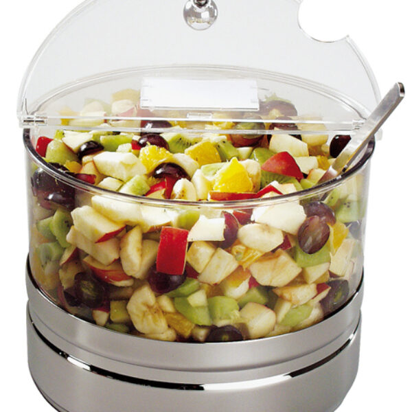 Polecana do bufetów, chłodząca misa do serwowania. W skład zestawu wchodzą: obudowa wykonana ze stali nierdzewnej polerowanej, wkład chłodzący, pozwalający dłużej zachować świeżość potrawy oraz wykonana z poliwęglanu, przeźroczysta misa o pojemności 4 l wraz z uchylną pokrywą z tworzywa i karteczką do opisu produktu. Naczynie idealnie przylega do chłodzącej podstawy. Nadaje się do sztaplowania. Można myć w zmywarkach.