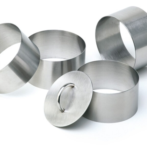 Zestaw 4 rantów wykonanych ze stali nierdzewnej satynowanej. Dociskacz w komplecie. Beznitowa konstrukcja. Można myć w zmywarkach.