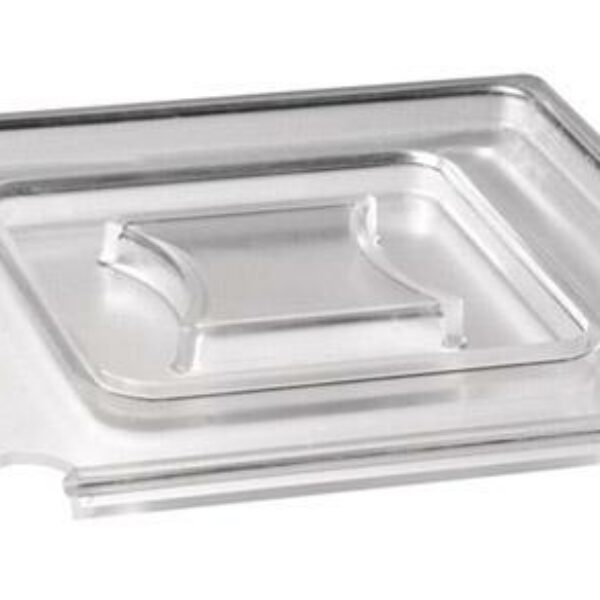 Pokrywka kwadratowa z wycięciem na łyżkę. Wykonana z tworzywa SAN. Można myć w zmywarkach i sztaplować. Wytrzymuje temperaturę do +120 stopni Celsjusza.