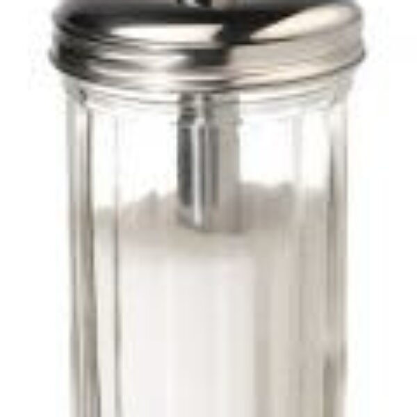 Szklany dozownik do cukru, z pokrywą i końcówką wykonaną ze stali nierdzewnej. Można myć w zmywarkach.