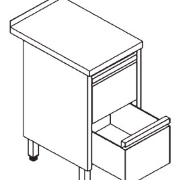 Znakomitej jakości stół przyścienny z szufladami wykonany ze stali nierdzewnej.