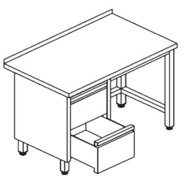 Znakomitej jakości stół przyścienny z szufladami wykonany ze stali nierdzewnej.