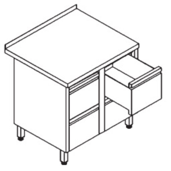 Znakomitej jakości stół przyścienny z szufladami wykonany ze stali nierdzewnej.