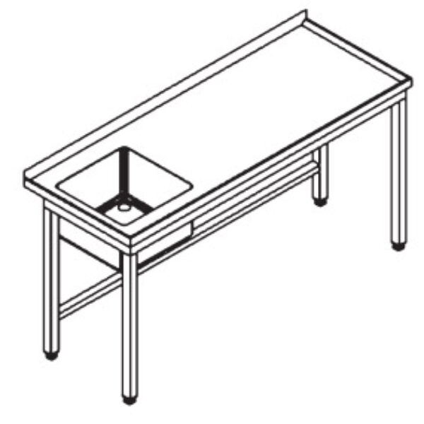 Znakomitej jakości stół przyścienny ze zlewem jednokomorowym wykonany ze stali nierdzewnej.