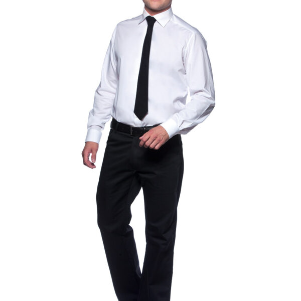 Koszula męska o kroju regular fit. Długie rękawy z mankietami oraz kołnierzyk Windsor. Guziki w kolorze koszuli. Wysoka jakość szwów, wzmacniane na ramionach i plecach. Dzięki elastyczności materiału koszula jest bardzo wygodna w noszeniu (Dow XLA spandex). Wykonana z 49% PES, 49% bawełna, 2% elastolefina, 125 g/m2. Można prać w pralce automatycznej w maksymalnej temperaturze 95 stopni Celsjusza, można wybielać. Prasować w temperaturze do 150 stopni Celsjusza. Można suszyć w suszarkach automatycznych w programie „delikatnie” oraz poddać profesjonalnemu czyszczeniu chemicznemu.