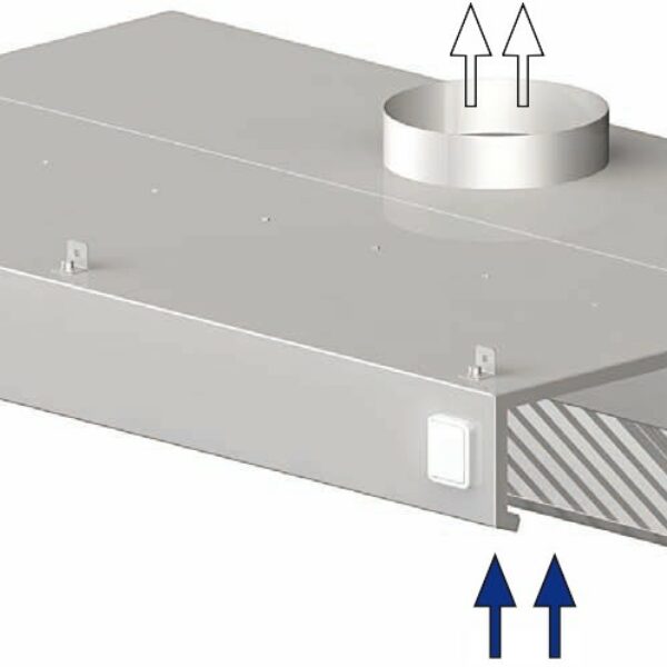 Okap przyścienny skośny 3900x900x450 mm wykonany z wysokiej jakości stali nierdzewnej. Rynienka ociekowa z zaworem spustowym. Przy szerokości powyżej 2900 mm okap dzielony na segmenty. Przy składaniu zamówienia należy podać średnicę, ilość oraz rozmieszczenie króćców przyłączeniowych. Dostępne króćce przeznaczone do montażu rur o średnicy: 100, 150, 160, 200, 250, 300, 315 mm. Labiryntowe łapacze tłuszczu oraz oświetlenie halogenowe dopłata. Zasilanie 230 V.