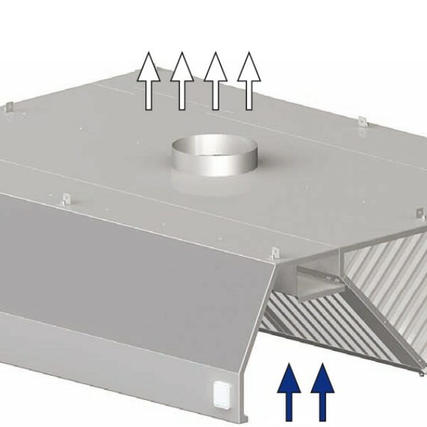 Okap centralny trapezowy 5000x2000x450 mm wykonany z wysokiej jakości stali nierdzewnej. Rynienka ociekowa z zaworem spustowym. Przy szerokości powyżej 2900 mm okap dzielony na segmenty. Przy składaniu zamówienia należy podać średnicę, ilość oraz rozmieszczenie króćców przyłączeniowych. Dostępne króćce przeznaczone do montażu rur o średnicy: 100, 150, 160, 200, 250, 300, 315 mm. Labiryntowe łapacze tłuszczu oraz oświetlenie halogenowe dopłata. Zasilanie 230 V. Okap dostarczany bez zawiesi.