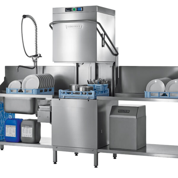 Zmywarka kapturowa PREMAX jest idealnym wyborem dla restauracji i średniej wielkości gastronomi hotelowej ja i również dla kuchni przemysłowej, stołówki czy cateringu. Zmywarka Hobart charakteryzuje się niskimi kosztami eksploatacji, zwiększoną wydajnością.Zmywarka kapturowa Hobart AUP posiada: PERMANENT-CLEAN Automatic (innowacyjny system filtrów eliminuje ręczne czyszczenie wstępne) Inteligentne sterowanie VISIOTRONIC (Inteligentne sterowanie VISIOTRONIC zapewnia prostą i intuicyjną obsługę zmywarki HOBART.) SENSO-ACTIVE Resource (Kontroluje czystość wody) ECO Vapo Rinse (Cykl płukania parą VAPO RINSE ECO redukuje zużycie świeżej wody do 1,6 litra na cykl. W porównaniu ze standardowymi maszynami oznacza to oszczędność nawet 55 % wody i środków myjących oraz nawet 70 % środka płuczącego.) Steam washing (Mycie parą) Ramiona mywająco-płuczące z mechanizmem CLIP-IN (Dla łatwiejszego czyszczenia zmywarki, istnieje możliwość wyjęcia obu ramion zmywająco-płuczących z komory myjącej jednym ruchem ręki dzięki systemowi CLIP-IN. Po wyczyszczeniu, ramiona mywająco-płuczące można równie łatwo ponownie wsadzić na miejsce bez używania narzędzi.) System zmywania ROTOR-X (System myjący gwarantuje doskonały rezultat zmywania na całej powierzchni kosza, szczególnie w narożnikach) POWER-PLUS Wash Programme (Program wysokociśnieniowy do mycia silnie zabrudzonych naczyń) Kontrola włożenia systemu filtracji (Sprawdza nieprzerwanie, czy sito oraz jednostka filtrująca są prawidłowo włożone.) Automatyczne zmniejszanie poboru mocy gdy zmywarka jest podłączona do ciepłej wody. EASY CLEAN Concept (identyfikacja komponentów do czyszczenia) Dyspenser środków płuczących Dyspenser środków myjących Pompa płucząca ACCURINSE (Pompa płucząca rozprowadza na naczynia poprzez system płukania zawsze dokładnie tę samą, zależną od programu ilość czystej wody o temperaturze ponad 65 °C. Pompa pozwala zaoszczędzić nawet do 30% wody energii i środków czyszczących.) Pompa odpływowa (Seryjna pompa spustowa pompuje zużyty roztwór do dowolnego odpływu umieszczonego na wysokości do ok. 1 m.) Program samoczyszczący Zmywarka wyposażona w 2 kosze na talerze, 1 uniwersalny płaski kosz, 1 kosz na sztućce. 8 automatycznych cykli: krótki, standardowy, intensywny, usuwanie skrobi, stały, higiena, sztućce, eco.W celu uzyskania wymaganej temperatury płukania nawet w przypadku przyłączenia do zimnej wody lub zmniejszonej mocy grzałki, urządzenie wyposażone jest w automatyczne wydłużenie czasu trwania programu.Dane techniczne: Czas wykonywania programu 52, 70, 170 s i specjalne cykle Wydajność 70 koszy/h Wydajność 1260 talerzy/h Wydajność 2520 szklanek/h Pojemność zbiornika 40 l Zużycie świeżej wody na kosz 1,4 l Wysokość przy otwartym kapturze 1995 mmDodatkowe Opcje: System zapobiegający uwalnianie pary do otoczenia (SEF-14/030) - Cena: 1745 EUR Panel tylny (SEF-15/054) (w przypadku gdy urządzenie nie jest zainstalowane przy ścianie.) - Cena: 445 EUR Panel narożny (ML71726) (w przypadku ustawienia zmywarki w narożniku.) - Cena: 105 EURUwaga! Cena dotyczy tylko zmywarki. Akcesoria widoczne na zdjęciu dostępne są za dodatkową opłatą!