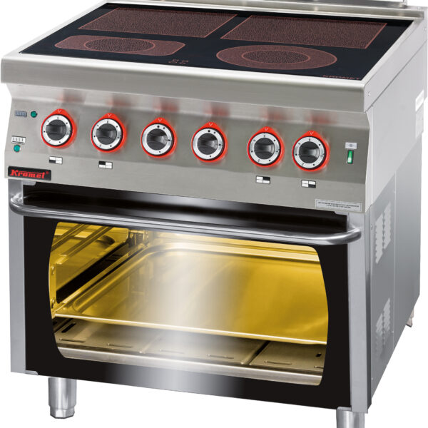 Kuchnia ceramiczna na podczerwień (infrared) 4-polowa z piekarnikiem elektrycznym statycznym GN 2/1, 18,6 kW, 800x700x900 mm | KROMET, 700.KE-4C/PE-2
