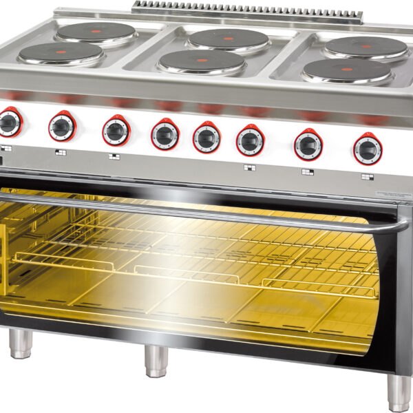 Kuchnia elektryczna 6-płytowa z piekarnikiem elektrycznym statycznym GN 3/1, 24 kW, 1200x700x900 mm | KROMET, 700.KE-6/PE-3