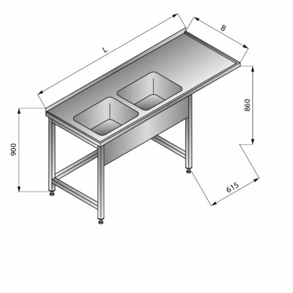 Stół zlewozmywakowy 2-zbiornikowy lewy, 1800x700x900 mm | LOZAMET, LO345/L