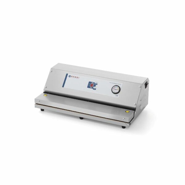 Pakowarka próżniowa listwowa z linii Profi Line marki Hendi o długości listwy zgrzewającej 500 mm. Jej uniwersalność oraz łatwość obsłudze sprawia, że świetnie nadaje się zarówno do dużej jak i małej gastronomii.Cechy produktu:- Wykonana ze stali nierdzewnej- Profesjonalna pompa oraz manometr próżniowy- Dwa programy automatyczne i jeden manualny- Cyfrowy wyświetlacz- Regulowany czas zgrzewania- Listwa zgrzewająca pokryta teflonem- Długość listwy zgrzewającej: 500 mm- Pompa próżniowa olejowa: 40 l/min- Do użytku wyłącznie z workami moletowanymi