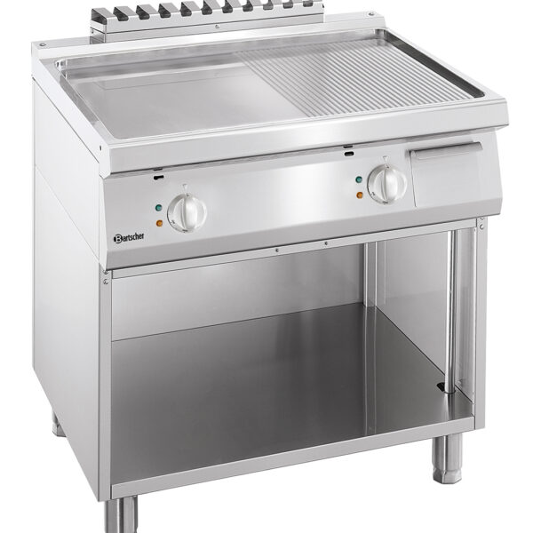 Płyta grillowa elektryczna z płytą stalową gładką/ryflowaną i otwartą podstawą, 800x700x850 mm | BARTSCHER, 700 Classic