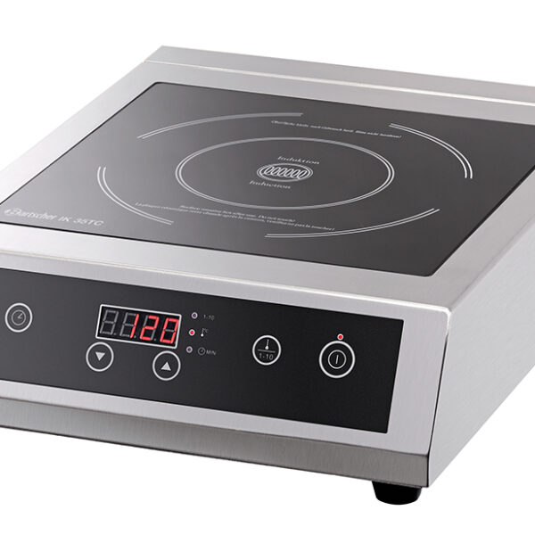 Kuchenka indukcyjna IK 35TC:- powierzchnia gotująca szkło, obudowa ze stali nierdzewnej,- dotykowy panel obsługowy z wyświetlaczem elektronicznym,- timer,- 10 stopni mocy (500 - 3500 W),- 10-stopniowe ustawianie temperatury,- zakres temperatur: 60 °C do 240 °C,- moc przyłączeniowa: 3,5 kW / 220-240 V 50/60 Hz,- elektroniczna ochrona przed przegrzaniem,- wymiary: szer. 340 x gł. 445 x wys. 117 mm,- waga: 7,45 kg,- urządzenie nie jest przeznaczone do pracy ciągłej w zastosowaniu przemysłowym.SZYBKO, BEZPIECZNIE I WYGODNIE - GOTOWANIE INDUKCYJNEIndukcja opiera się na magnetycznym cieple, które powstaje bezpośrednio w dnie garnka. Pod szklano-ceramiczną powierzchnią znajduje się cewka indukcyjna. Po jej włączeniu powstaje pole magnetyczne, które podgrzewa dno garnka. W przeciwieństwie do innych rodzajów kuchenek nagrzewa się wyłącznie garnek lub patelnia, sama kuchenka pozostaje zimna. Do gotowania na płytach indukcyjnych potrzebne są naczynia z dnem wykonanym z magnetycznej stali szlachetnej.WIĘKSZA OSZCZĘDNOŚĆ CZASUCzas zagotowania 2 litrów wody z 15°C do 90°C*:Szklano-ceramiczna płyta kuchenna: ok. 10 min.*Gazowa płyta kuchenna: ok. 7 min.*Indukcyjna płyta kuchenna: ok. 3-4 min.** Wartości są orientacyjne i zależą od cech garnka/patelni oraz temperatury otoczenia.