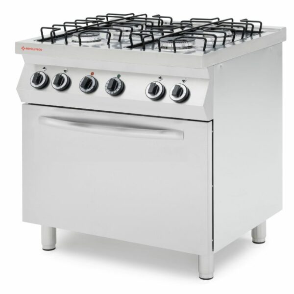 Kuchnia gazowa 4-palnikowa z piekarnikiem gazowym GN 1/1, 21 kW, 800x700x900 mm | REVOLUTION, 226445