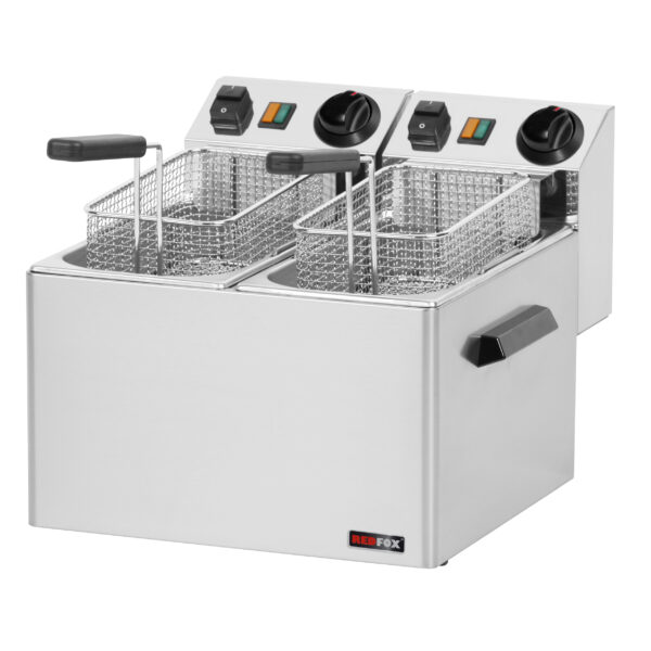 Frytownica elektryczna dwukomorowa 2x 5 l, nastawna, 6 kW, 360x420x300 mm | REDFOX, FE-44S