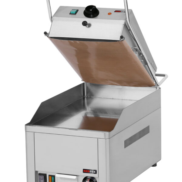 Grill do steków elektryczny ze stali chromowanej, 1 strefa grzewcza 1 płyta górna, nastawny, 6 kW, 330x680x400 mm | REDFOX, KD-33ED