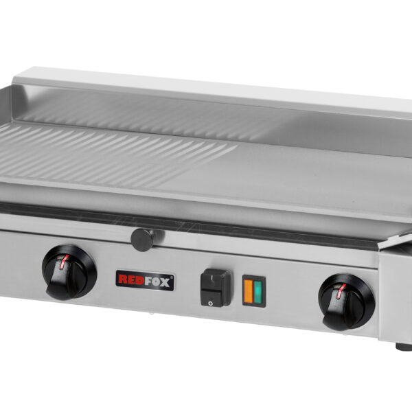 Płyta grillowa elektryczna, ze stali nierdzewnej, 1/2 gładka i 1/2 ryflowana, nastawna, 3 kW, 580x310x200 mm | REDFOX, PD-2020BM
