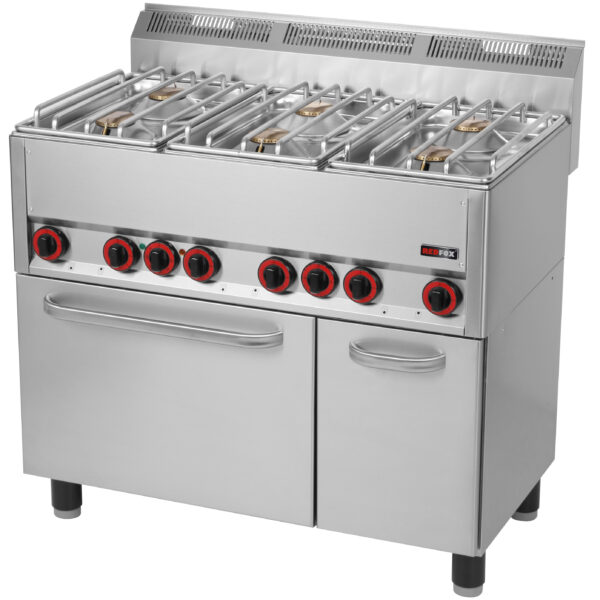 Kuchnia gazowa 6-palnikowa z piekarnikiem elektrycznym z termoobiegiem GN 1/1 i szafką, 30,13 kW, 990x600x860-920 mm | REDFOX, Linia 600, SPT90GLS