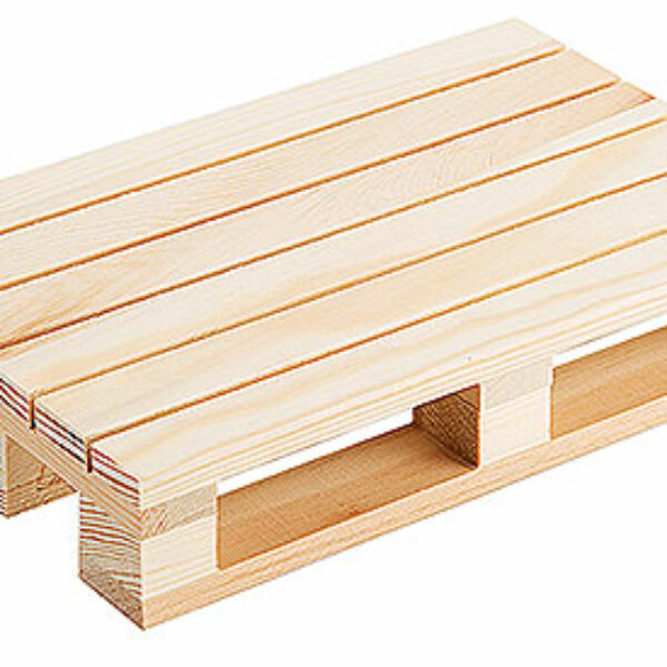 Mini paleta do serwowania potraw o wymiarach 200 x 130 x 35 mm. Wykonana z nieobrobionego drewna, nie można myć w zmywarce.