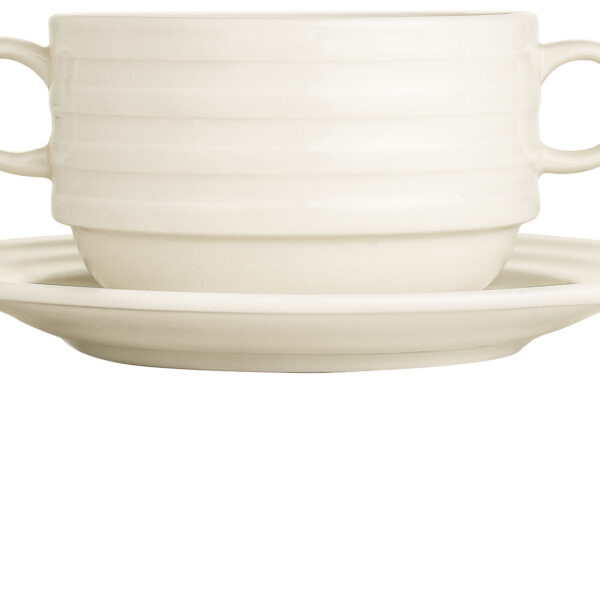 Wysokiej jakości porcelana o wzmocnionym szkliwie, w ciepłym odcieniu kości słoniowej. Posiada charakterystyczne przetłoczenie, uwypuklające kompozycję potrawy. Wzmocnione brzegi zapewniają trwałość, potwierdzona 5-letnią gwarancją na wyszczerbienia brzegów (wszystkie elementy płaskie). Gwarancja na wyszczerbienia brzegów wynosi 5 lat.