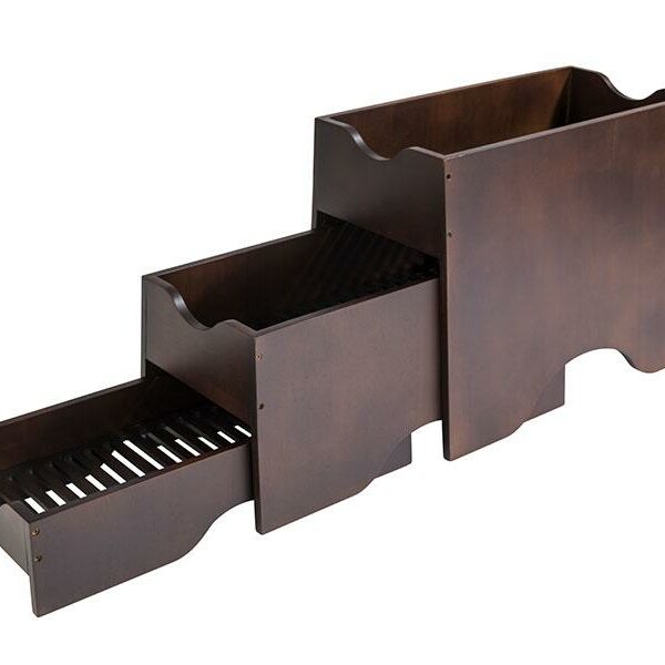 Wykonany z drewna. Rozmiary poziomów: 400 x 230 x 330 mm, 400 x 205 x 200 mm, 400 x 180 x 90 mm.