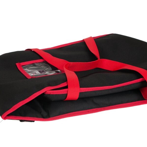 Torba na 5 pudełek o wymiarach 600x600 mm, czarna z czerwoną lamówką, wykonana jest z mocnego i łatwo zmywalnego materiału - kodura. Ekonomiczna gama modeli toreb, pakowania izotermiczne firmy FURMIS nie tylko pozwolą zaoszczędzić czas i pieniądze, ale pozwolą również poprawić jakość Państwa usług. Produkt dotrze do klienta gorący i nie pozbawiony walorów smakowych. Zaoszczędzicie Państwo czas oraz zyskacie możliwość obsługi znacznie większej liczby klientów.