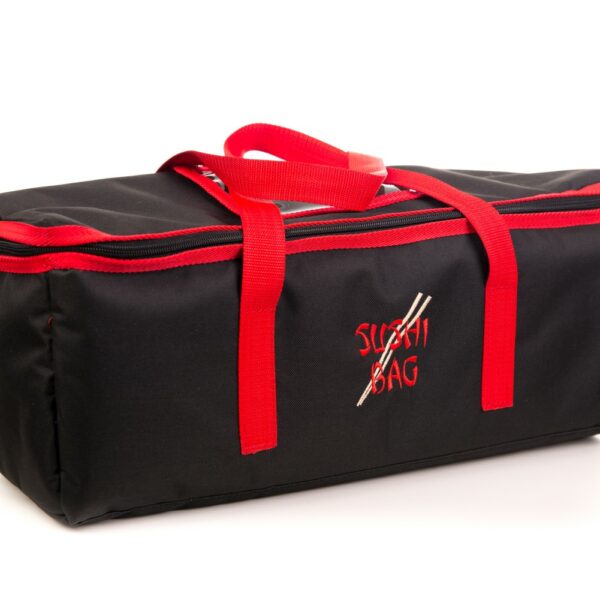 Dodatkowe informacje:- Torba na 9 porcji sushi.- Torba wykonana z mocnego i łatwo zmywalnego materiału - nylon- Czerwona z czarną lamówką- Wymiary wewnętrzne: 400 x 180 x 170 mm.- Wymiary zewnętrzne: 500 x 200 x 220 mm.- Torba posiada usztywnienie spodu oraz dodatkowe wewnętrzne boczne kieszenie na wkłady chłodzące.