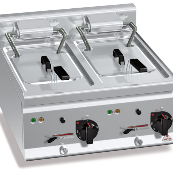 Frytownica elektryczna dwukomorowa 2x 10 l z kranem spustowym, nastawna, 12 kW, 600x600x290 mm | BERTO'S, Plus 600, FAST FRY, E6F10-6B