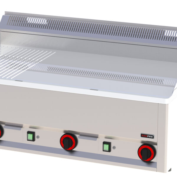 Płyta grillowa elektryczna, żeliwna chromowana, 2/3 gładka i 1/3 ryflowana, nastawna, 9 kW, 990x600x290 mm | REDFOX, Linia 600, FTHRC90EL