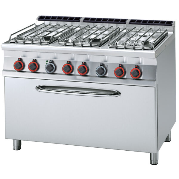 Kuchnia gazowa 6-palnikowa z piekarnikiem gazowym 3x GN 1/1, 46 kW, 1200x700x900 mm | LOTUS, CF6-712 G/P