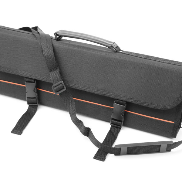• 10 przegródek na noże ( o maksymalnej długości 450 mm)• Noże chronione za pomocą dodatkowych osłon - zapobiegają stykaniu się noży po złożeniu torby• 1 kieszeń na notatnik, 4 małe kieszenie na wizytówki oraz 3 przegródki na drobne akcesoria lub długopisy• Długość paska na ramię można regulować w zakresie od 770 mm do 1270 mm• Wymiary torby: 510 x 50 x 170 mm• Torba sprzedawana bez noży