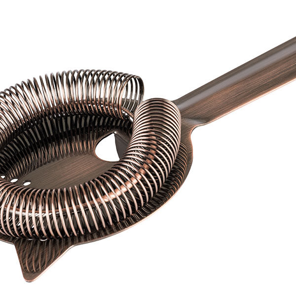 Sprężyna zapobiega wysunięciu się sitka z shakera lub szklanki. Sitko pasuje do wszystkich shakerów i szklanek. Miedziany antyczny.