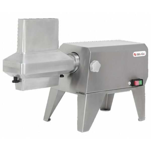 Kotleciarka do mięsa KM20 jest profesjonalnym urządzeniem do ugniatania i zmiękczania mięsa. Znajduje zastosowanie w sklepach, placówkach zbiorowego żywienia, w zakładach gastronomicznych i przetwórstwa żywności oraz w cateringu.Maszyna została przygotowana z bardzo dużą starannością w zakresie utrzymania czystości i bezpieczeństwa użytkowania. Wysokie położenie otworu wlotowego zabezpiecza przed dotknięciem obracających się noży na wałkach. Zastosowanie polerowanej obudowy o regularnych kształtach sprawia, że urządzenie jest bardzo łatwe w czyszczeniu. Odpowiednia wysokość wylotu umożliwia zastosowanie naczyń gastronomicznych i poprawia komfort użytkowania. Wykończenie Obudowa napędu wykonana ze stali nierdzewnej.Obudowa modułu kotleciarki wykonana z aluminiumanodowanego. Zestaw tnący Segmenty ugniatające wykonane ze stali nierdzewnej.Cechy urządzenia:- Łatwo demontowalna obudowa modułu wraz z zestawem wałków ugniatających, - Łatwość czyszczenia obudowy urządzenia, - Stalowa przekładnia zębata smarowana smarem półpłynnym, - Wyposażona w zespół specjalnie ukształtowanych segmentów ugniatających wykonanych ze stali nierdzewnej, - Duża wydajność użytkowa – skuteczne rozgniatanie już w pierwszym cyklu OgraniczeniaNie używać urządzenia do ugniatania zmrożonego mięsa, mięsa z kością a także do kruszenia samych kości oraz do mięsa drobiowego. Elementy maszyny stykające się z żywnością myć codziennie, po myciu osuszyć. Zabrania się mycia całej maszyny strumieniem wody. Maszyna spełnia standardy CE w zakresie bezpieczeństwa i higieny: - EN 60204-1:2010 (Bezp. elektryczne) - Dyr. 2006/42/WE