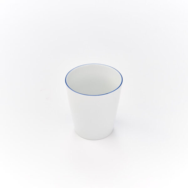 ●Porcelana biała, gładka, niebieski rant ●Można myć w zmywarce i używać w mikrofali ●cena za sztukę (bez talerzyka) ●pakowane po 6 szt. ●podane pojemności są całkowite ●pojemność użytkowa 330 ml ●można piętrować
