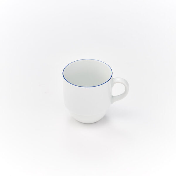 ●Porcelana biała, gładka, niebieski rant ●Można myć w zmywarce i używać w mikrofali ●cena za sztukę ●pakowane po 6 szt. ●podane pojemności są całkowite ●pojemność użytkowa 330 ml ●można piętrować