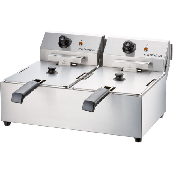 ●obudowa wykonana ze stali nierdzewnej ●wyjmowany pojemnik na fryturę ●zakres regulacji termostatu 60 -190 °C ●termostat bezpieczeństwa ●zabezpieczenie odcinające zasilanie po demontażu głowicy grzejnej ●kosze ze składanymi rączkami ●wymiary kosza bez rączki 2x130x220x100 mm