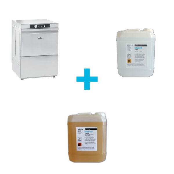 Solidna, bezawaryjna i oszczędna zmywarka z dozownikami i pompą spustową, dzięki czemu przestaje mieć znaczenie umiejscowienie odpływu wody. Taka zmywarka może być umieszczona pod blatem roboczym i niekonieczne staje się użycie podstawy pod urządzenie. W komplecie znajdują się niezawodne płyny do mycia i nabłyszczania naczyń zapewniające każdorazowo optymalne efekty.